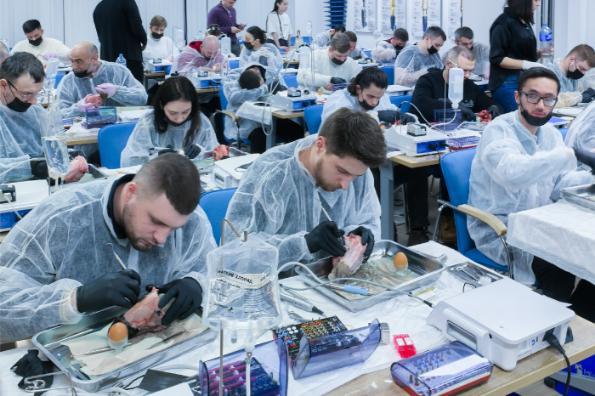 В первый день курсанты прошли большой блок по костной пластике и сразу отработали ключевые методики на практике: