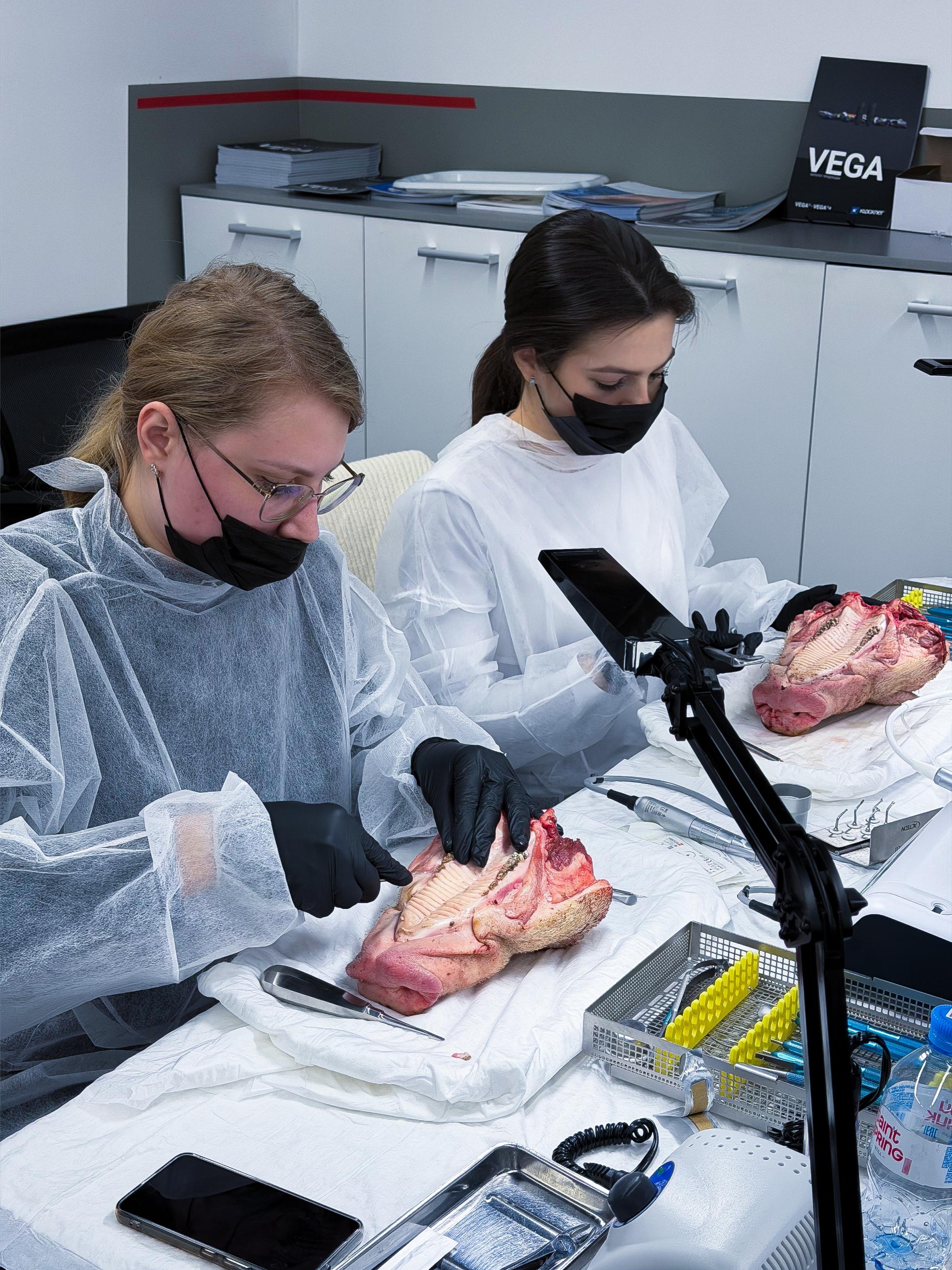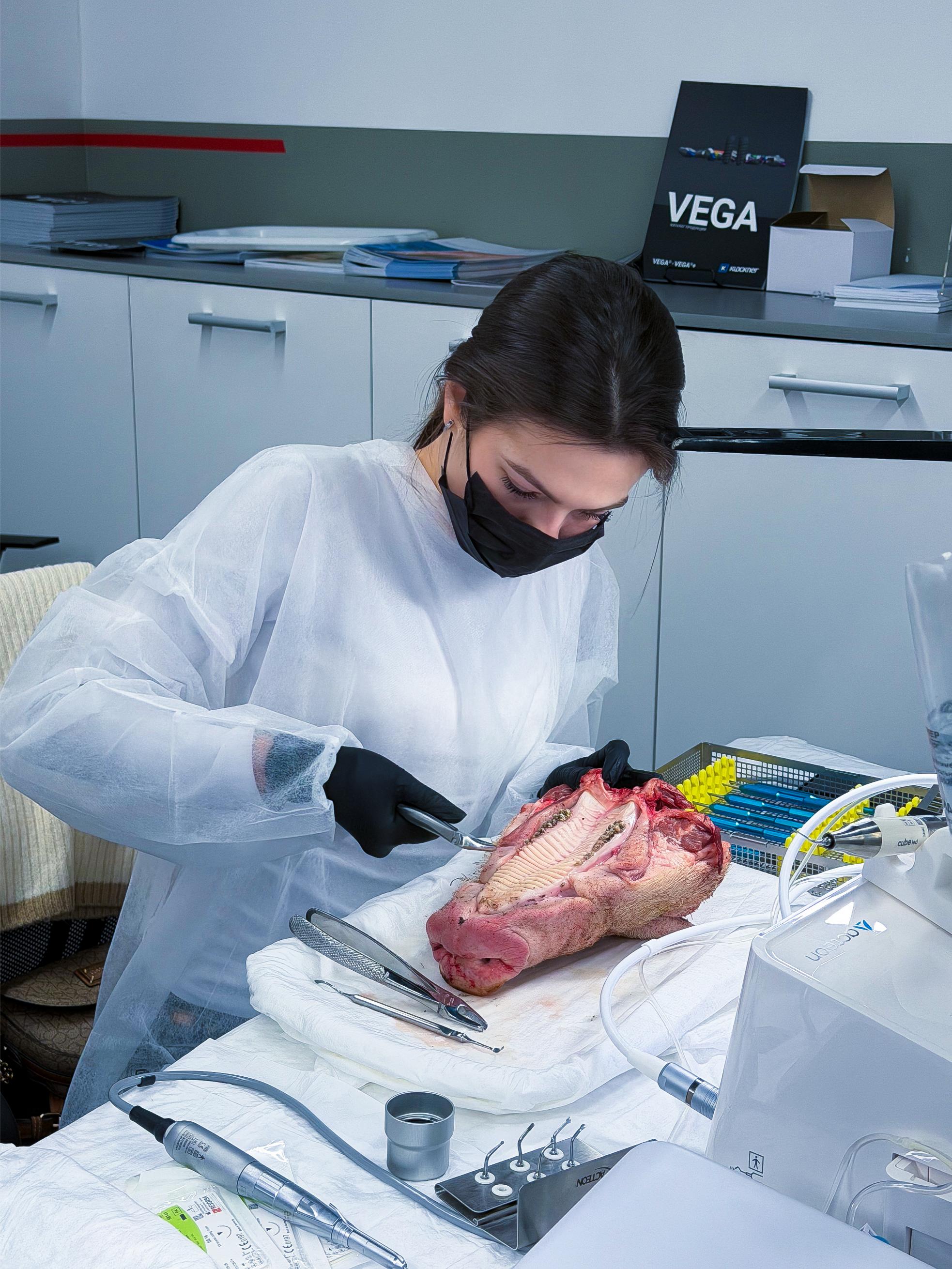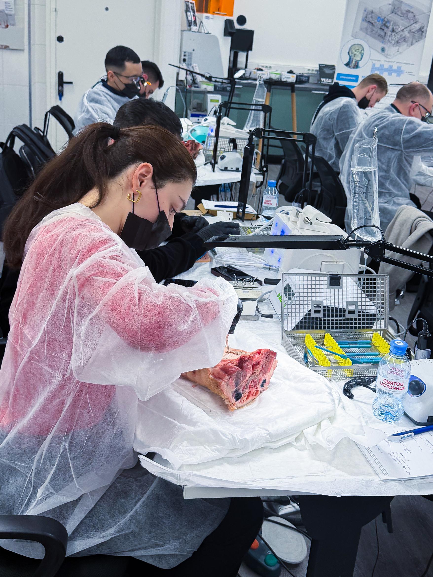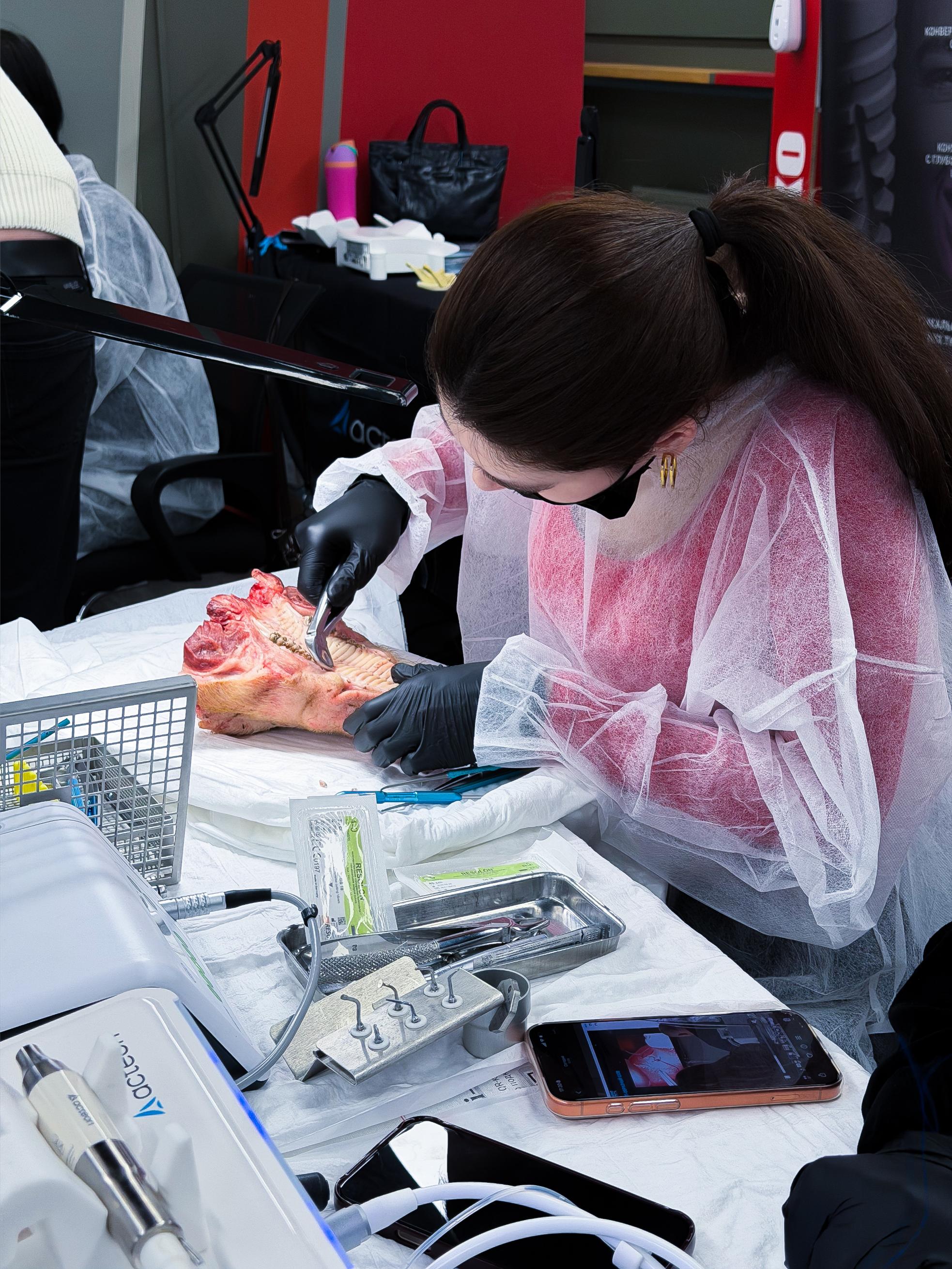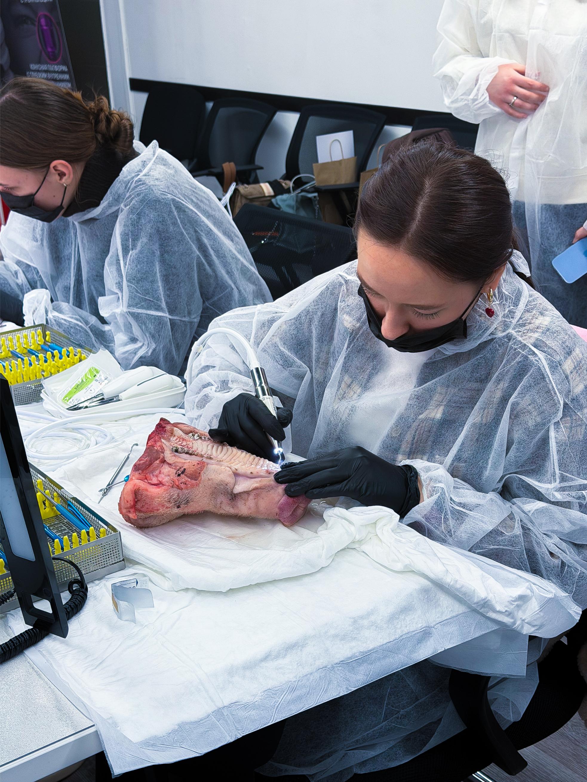 Именно такие ситуации сегодня разбирают участники. Курсанты отработали на свиных челюстях: