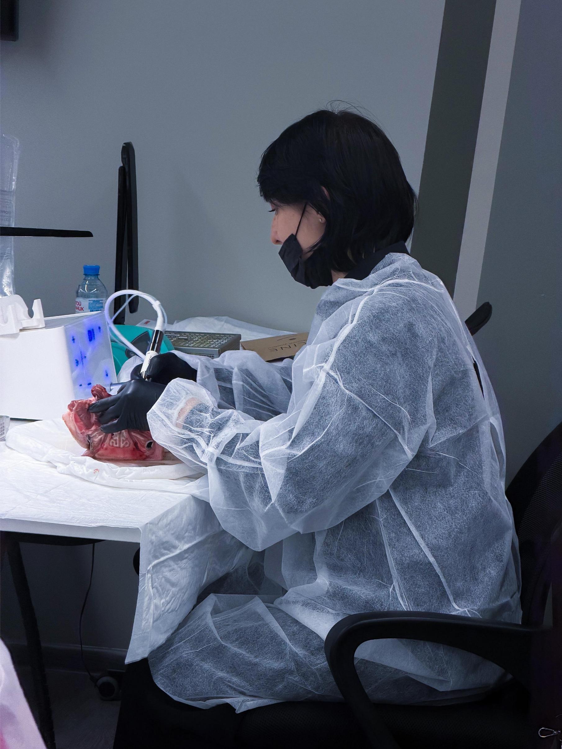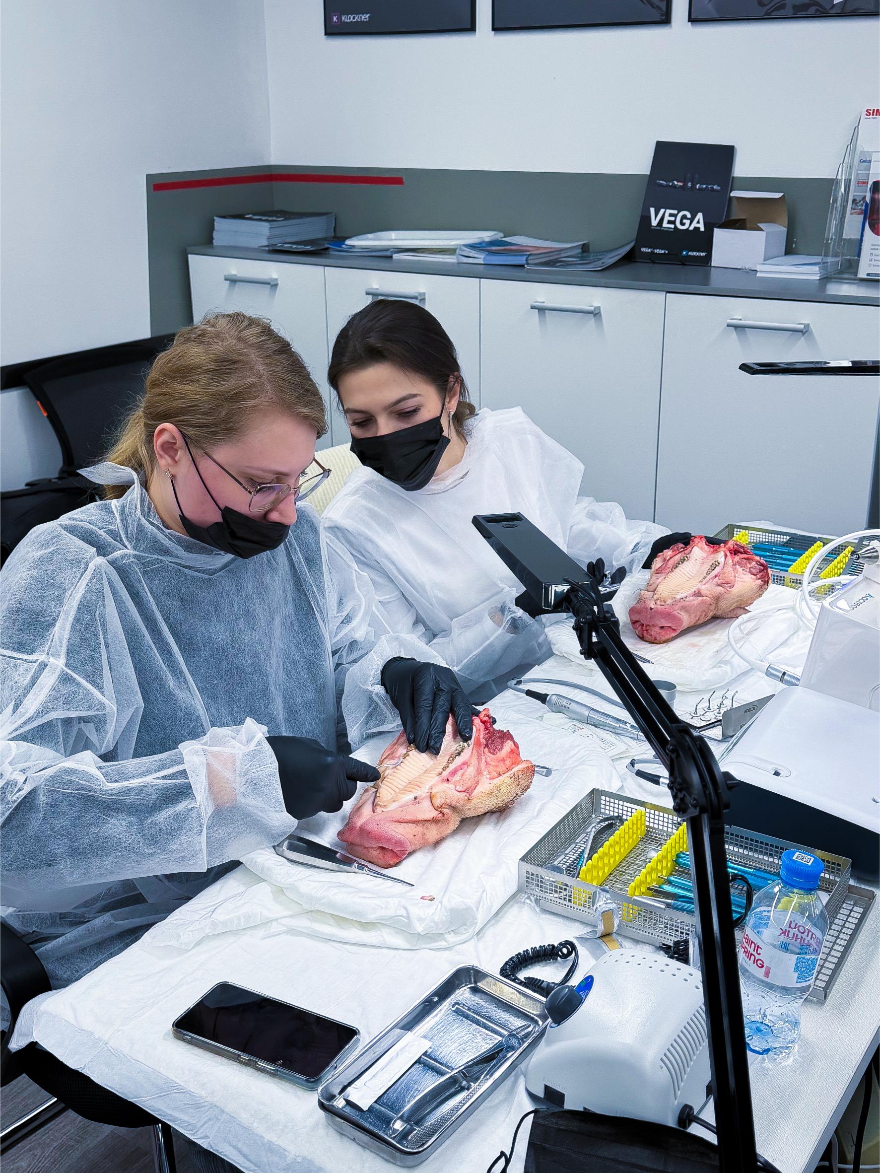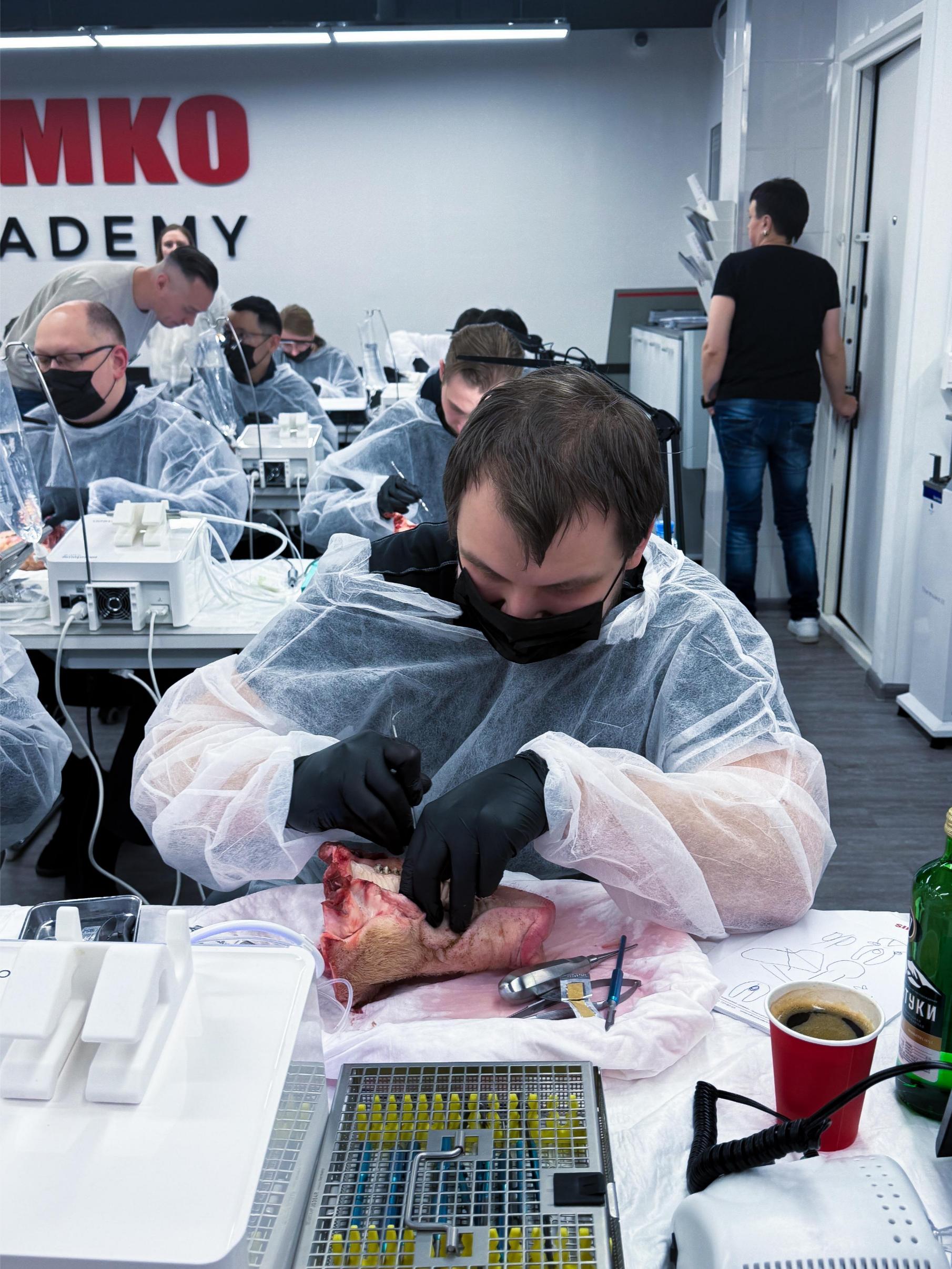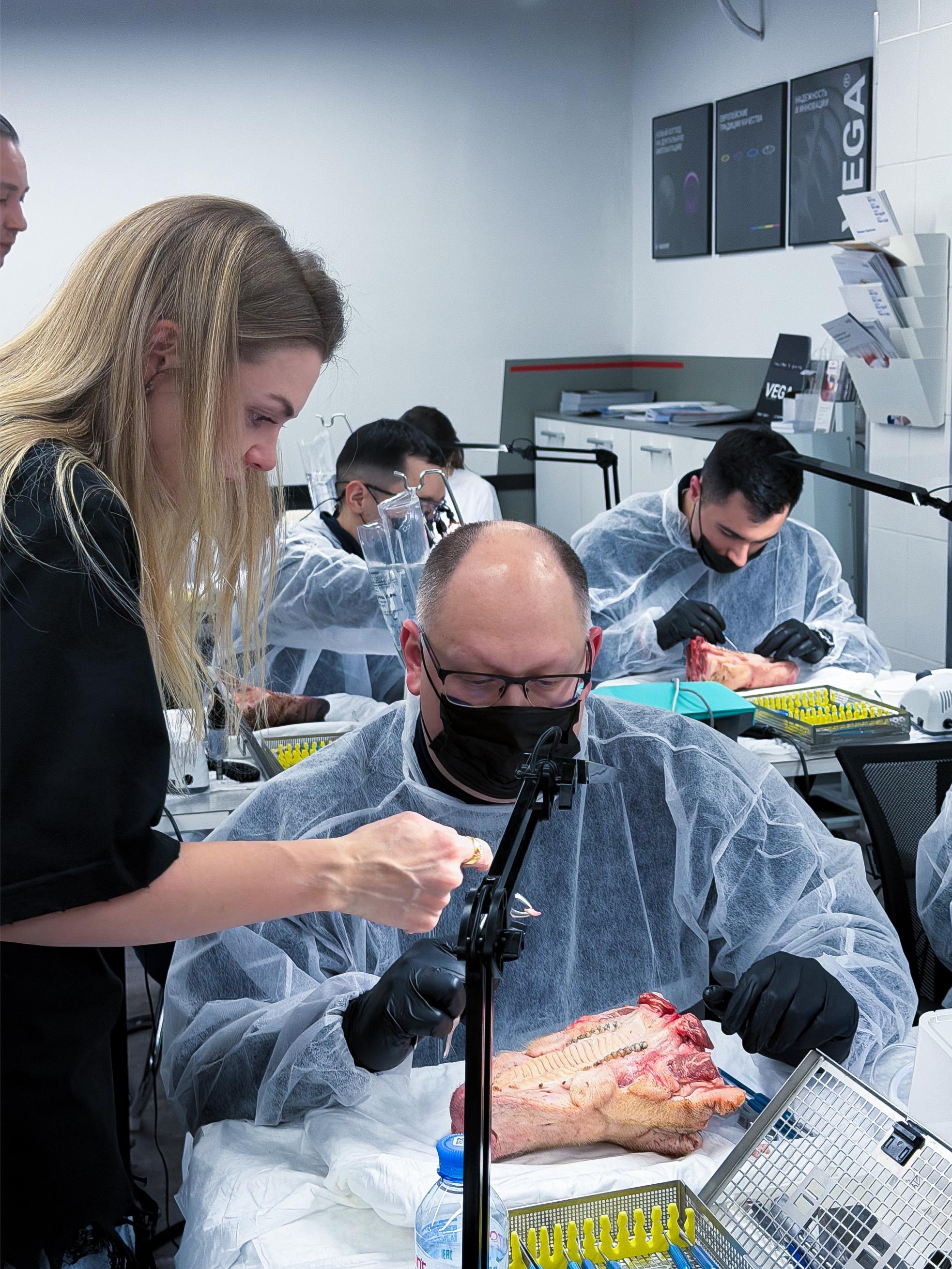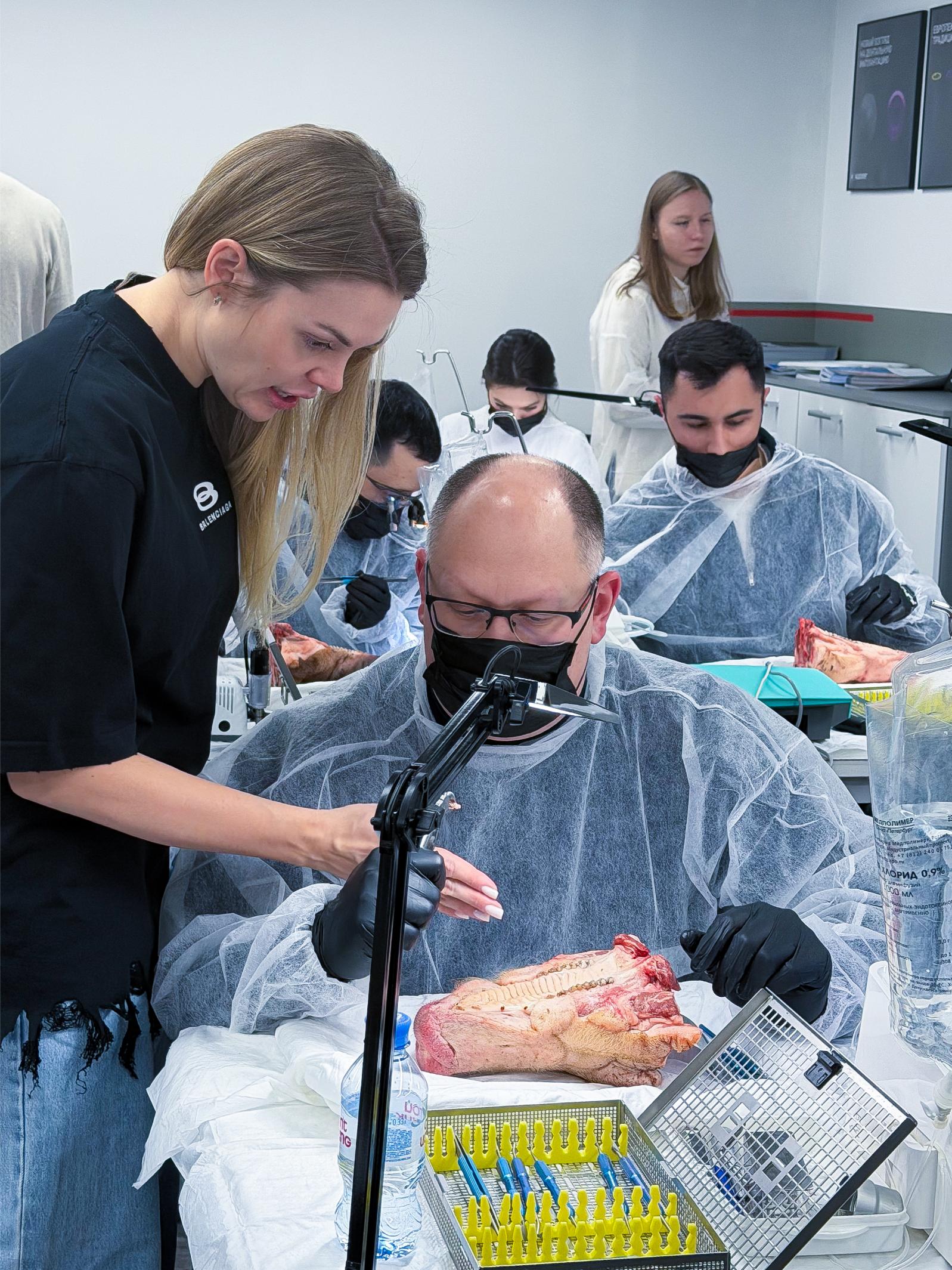 Именно такие ситуации сегодня разбирают участники. Курсанты отработали на свиных челюстях: