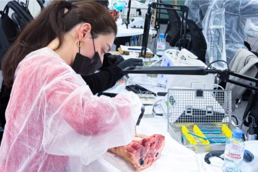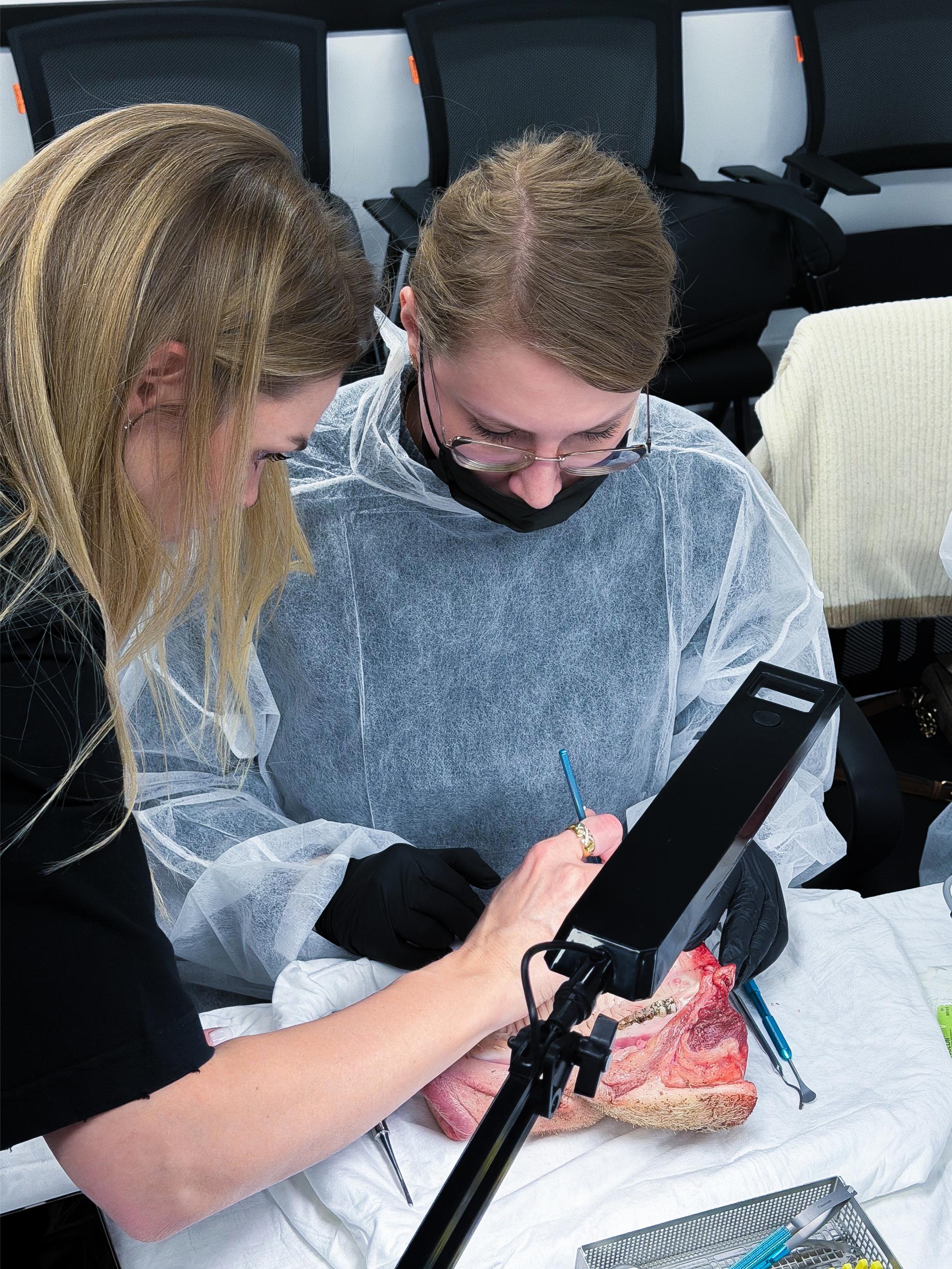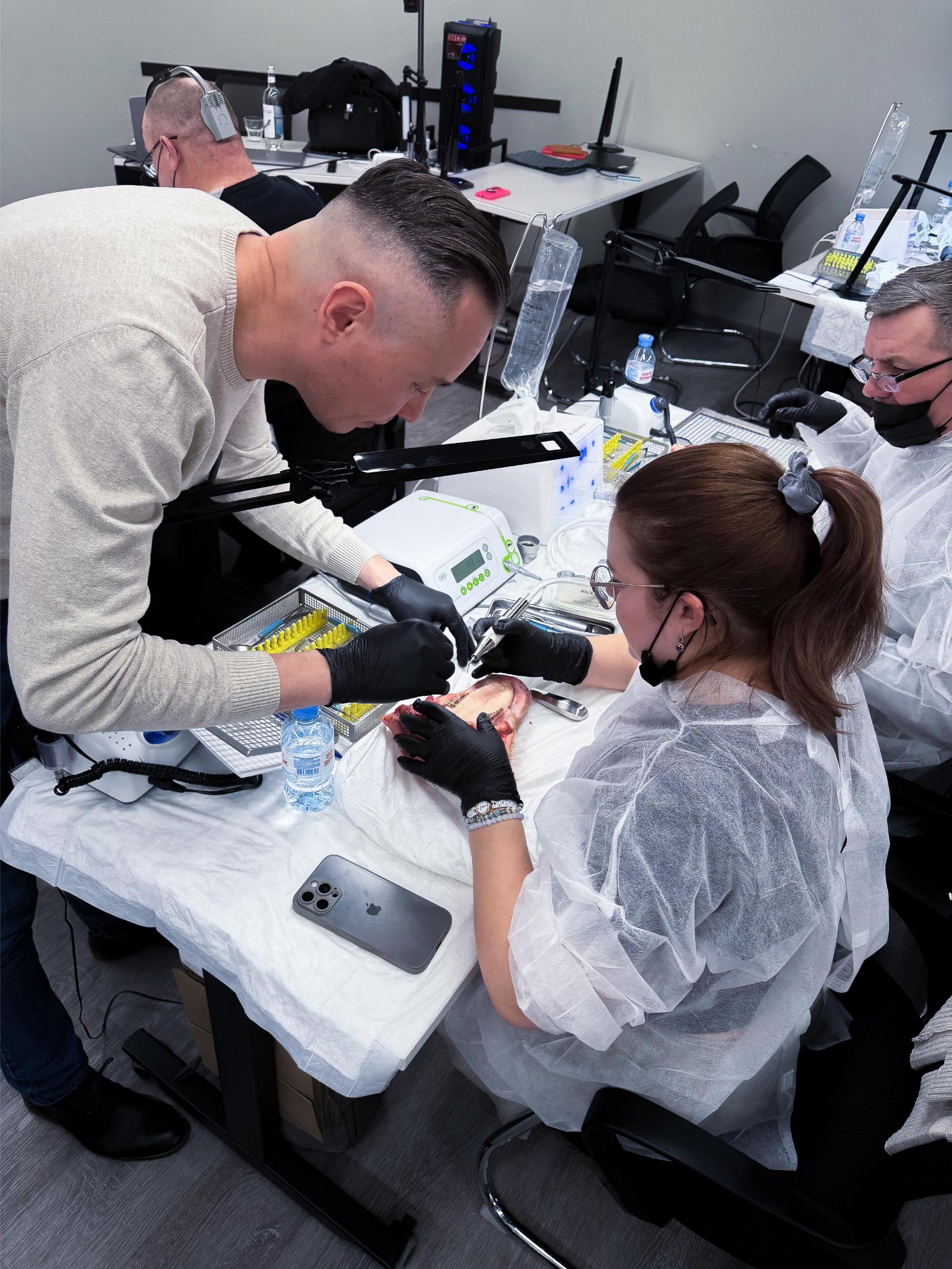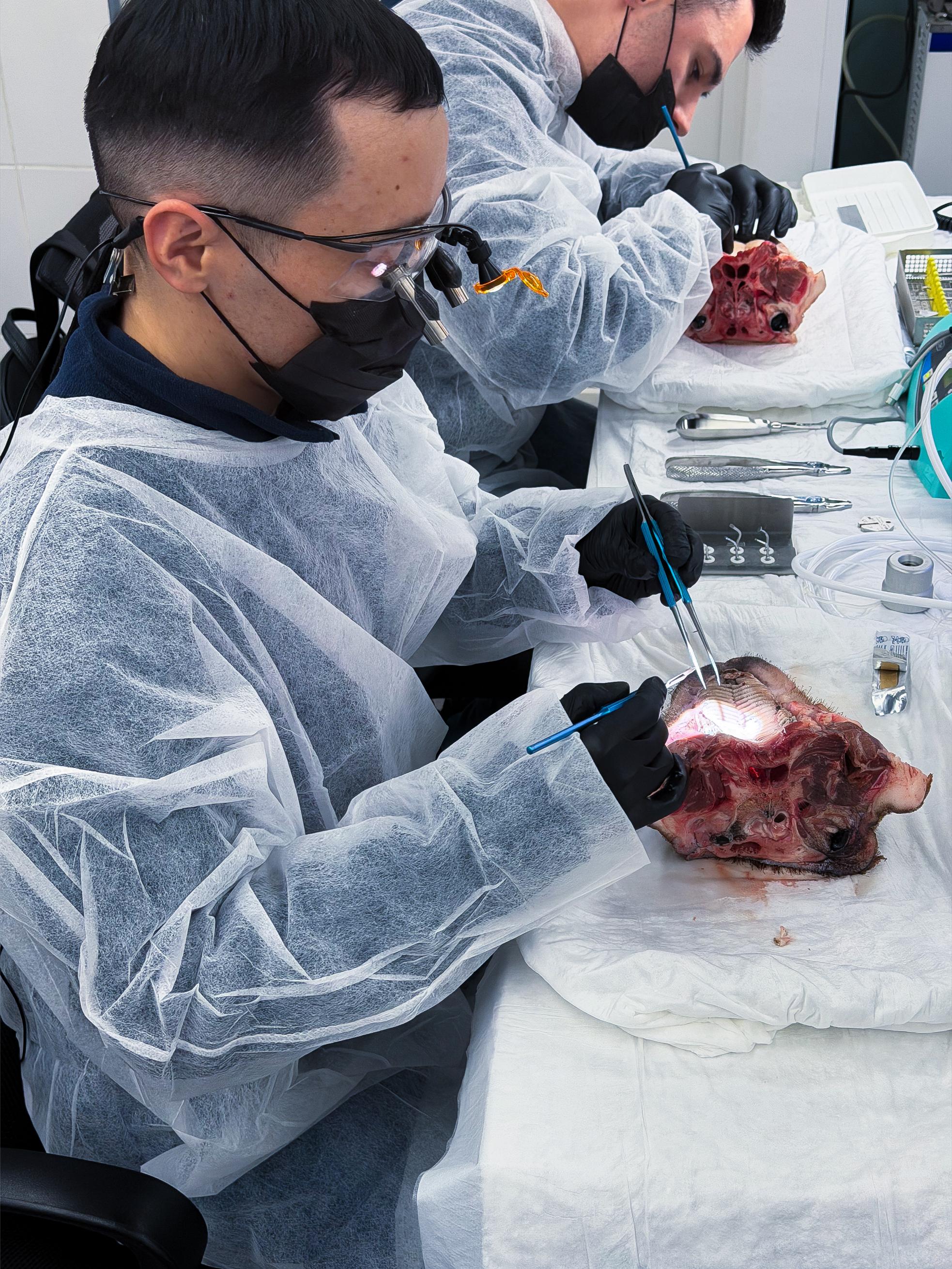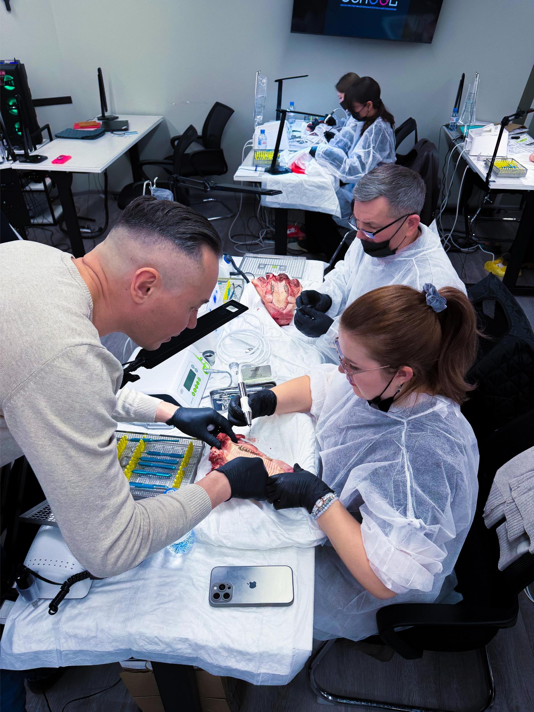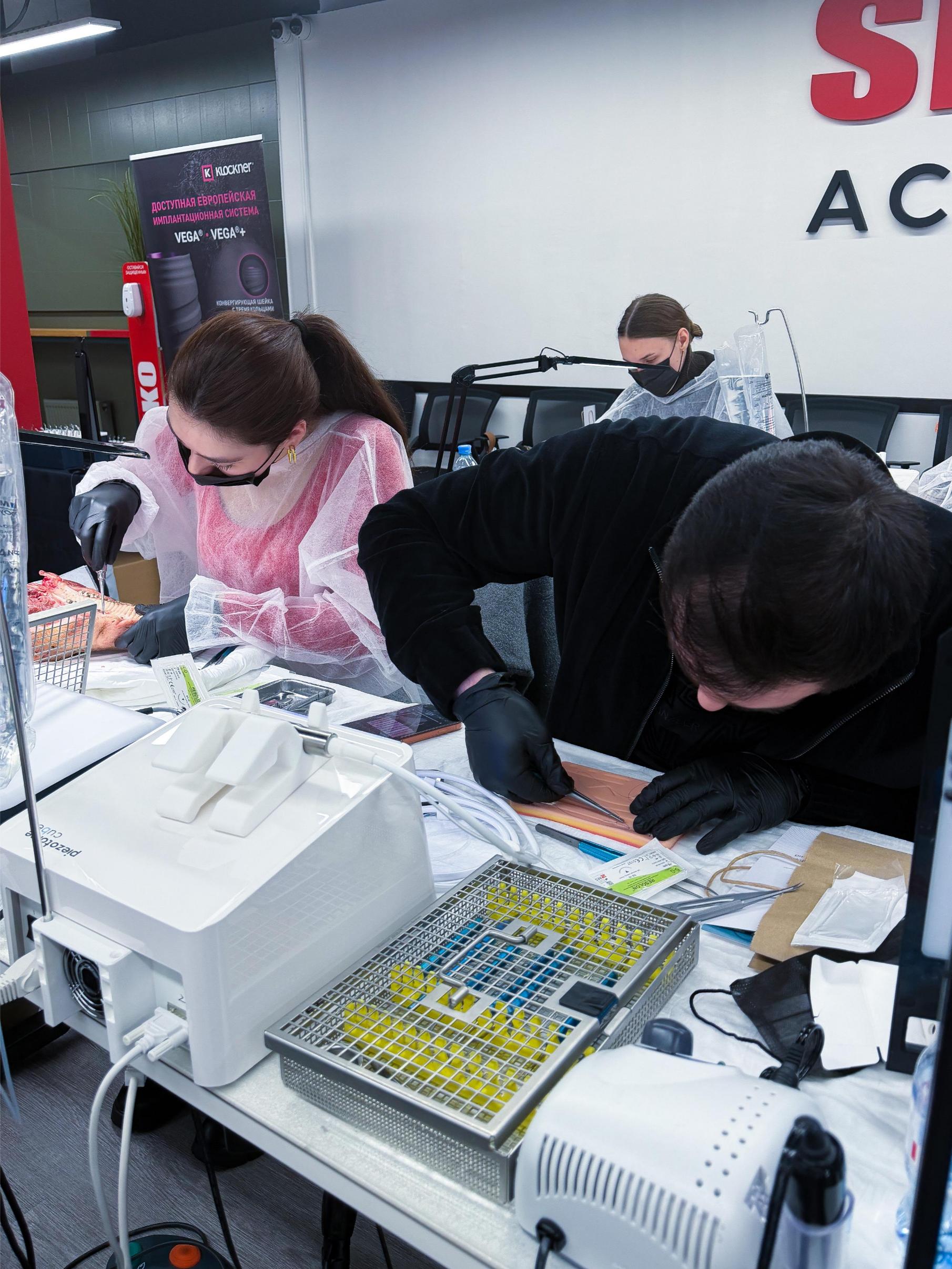 Именно такие ситуации сегодня разбирают участники. Курсанты отработали на свиных челюстях: