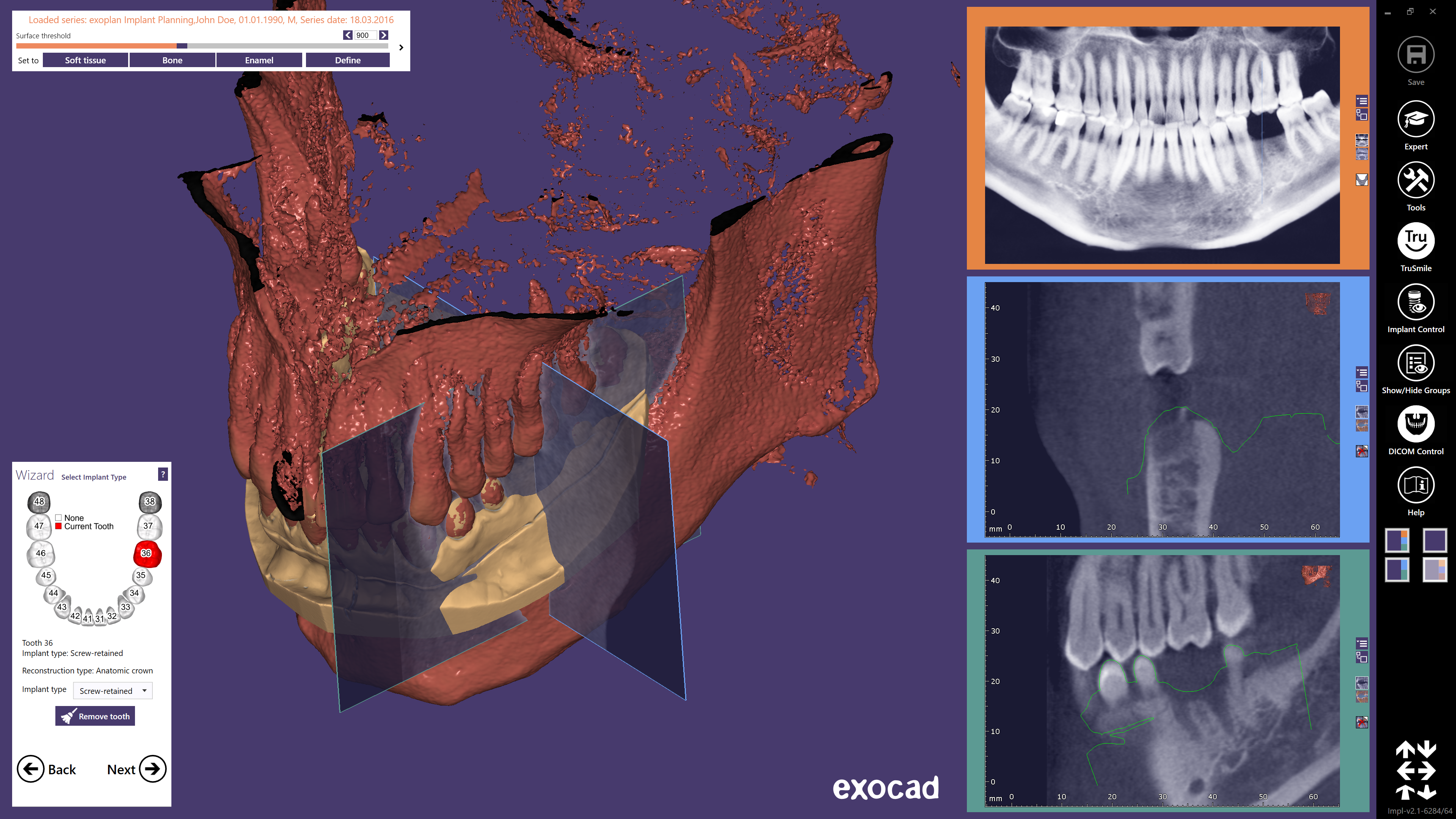 - Позиционировать имплантат и моделировать хирургический шаблон для 3D-печати.